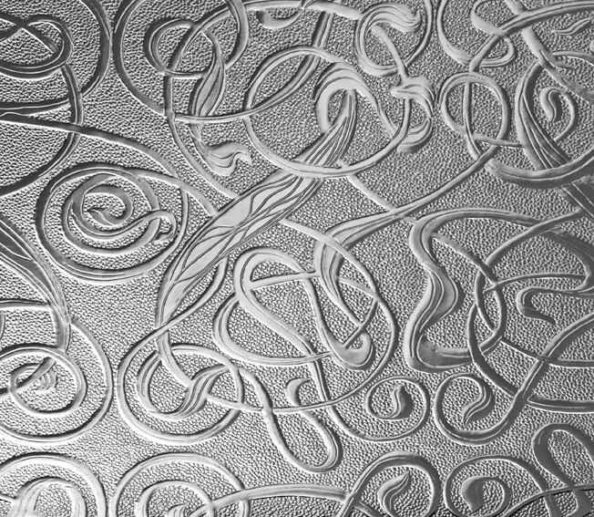 Glass can be given an opaque or frosted translucent appearance by acid-etching to produce fine detailed patterns.